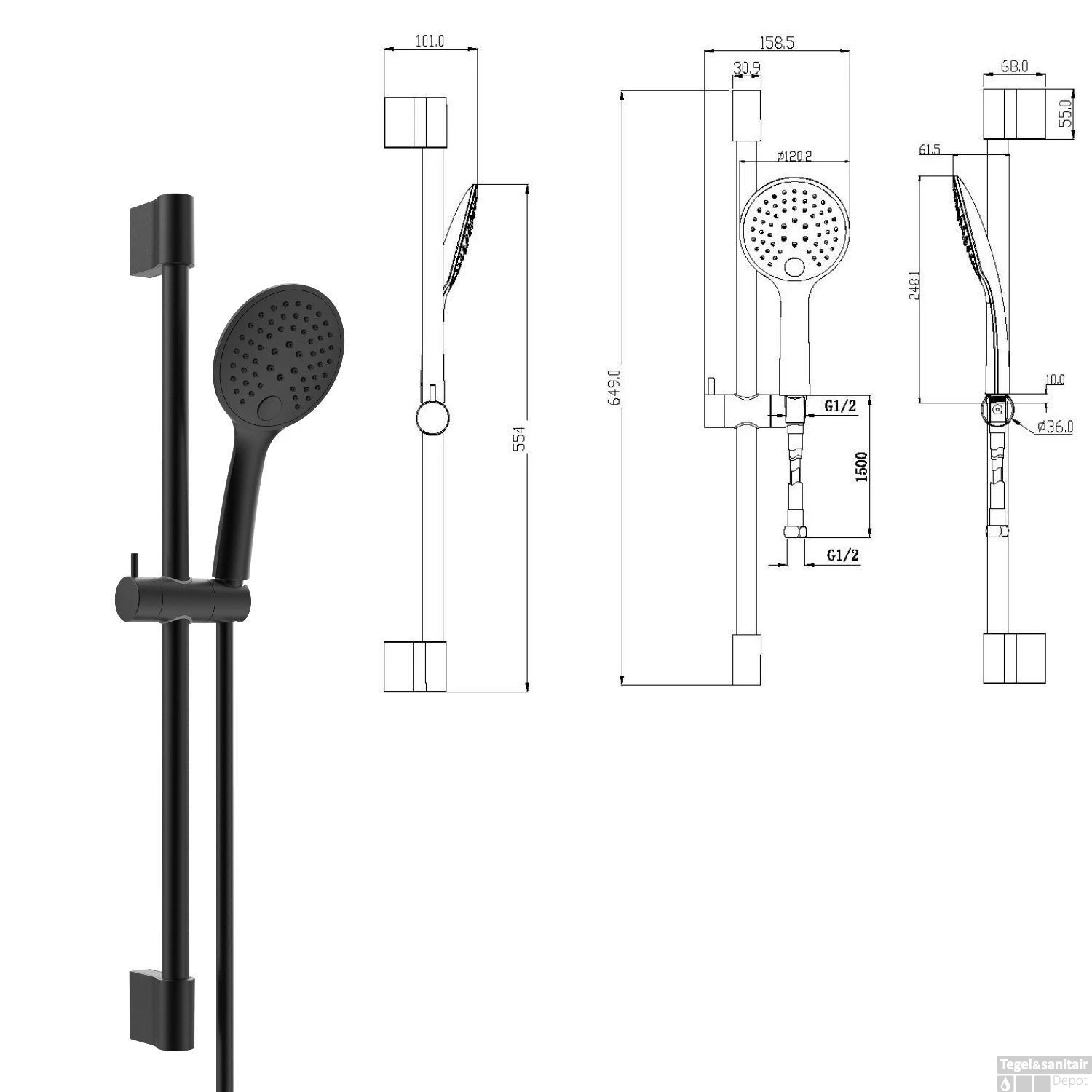 Wiesbaden Inbouw Regendouche Set 07 Caral met Glijstang Mat Zwart